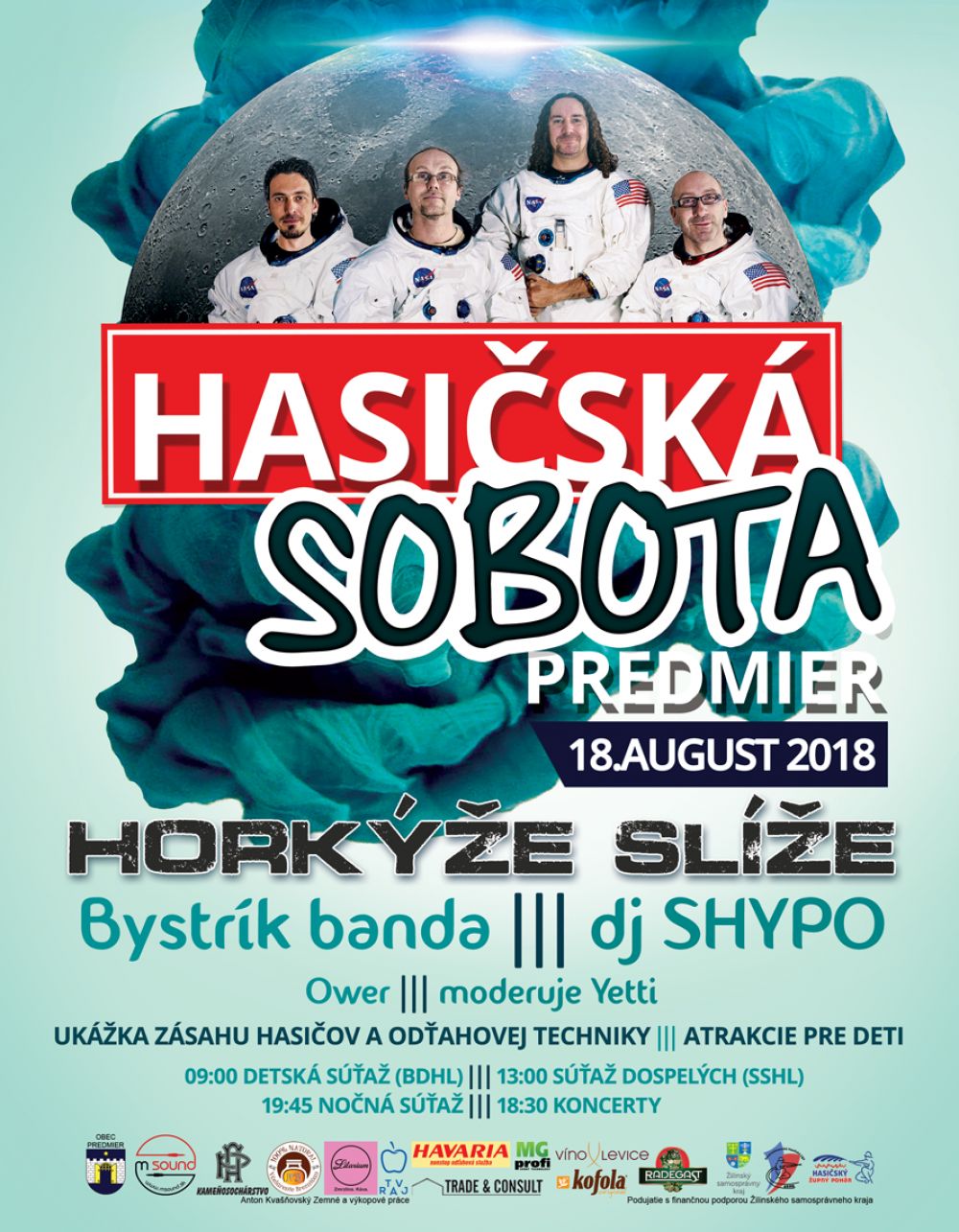 Nesmie u nás chýbať kvalitná hudba, svetlá, tanec a podvečer v areáli od 18.30 hod. začína OPEN AIR PARTY, koncert skupiny BYSTRÍK BANDA , DJ SHYPO, moderuje YETTI. HLAVNÝ HEADLINER: od 22.00 hod. vystúpi kapela HORKÝŽE SLÍŽE. Už teraz sa tešíme práve aj na Vás!