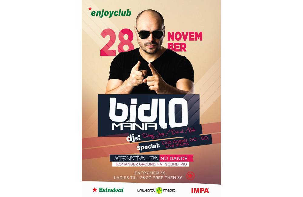 Už najbližší piatok nás čaká ďalšia hudobná nakladačka od šialenca Bidla doplnený live drums od Jančiho Huljaka. Hudobný support doplnený o domácu rezidentnú dvojicu Dub-ek Dohnny Jepp, sexi GO GO a samozrejme clubové anjelíky.