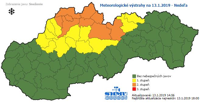 Trvanie výstrahy pre okres Žilina: od 14.1.2019 - 06:00 do 15.1.2019 - 00:00