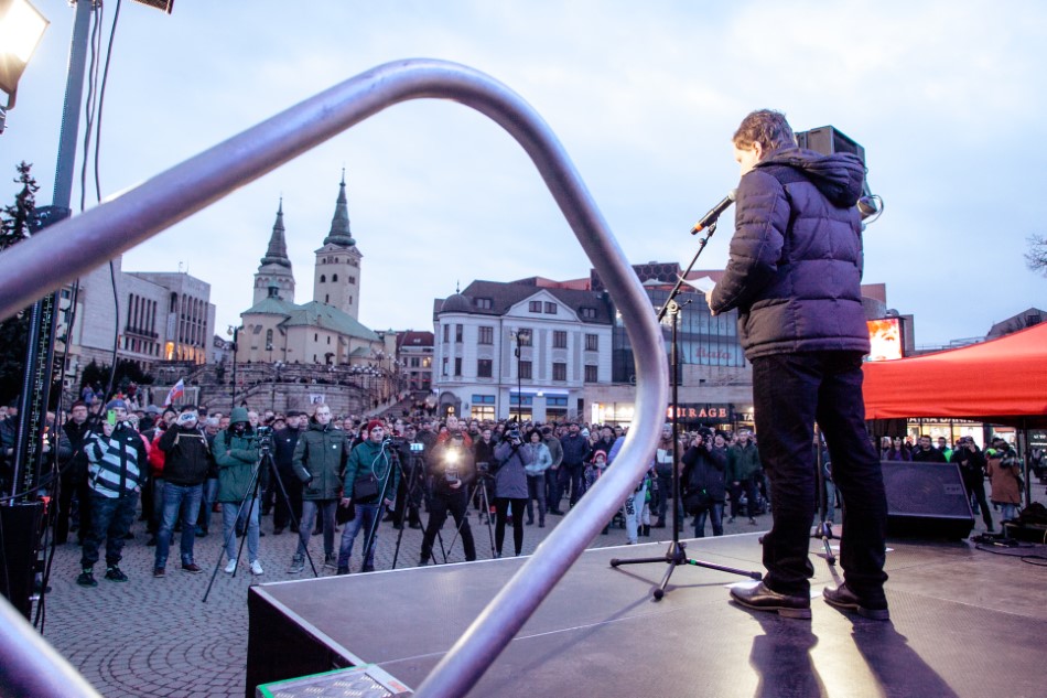 Proto je nesmírně důležité, aby slovenská občanská společnost ukázala svou sílu. Aby ukázala své odhodlání bránit svobodu a demokracii. Proto jsou nesmírně důležité vaše protesty. Kéž Vaše dnešní statečné NE společenskému zlu je stejně jako „Palachův týden“ v roce 1989 nebo svíčkoví manifestace v Bratislavě počátkem radikálního obratu ve slovenském veřejném životě. Kéž je počátkem vítězství demokracie nad mafiány, kteří mají na rukou krev i nad jejich spojenci v nejvyšších patrech politiky.