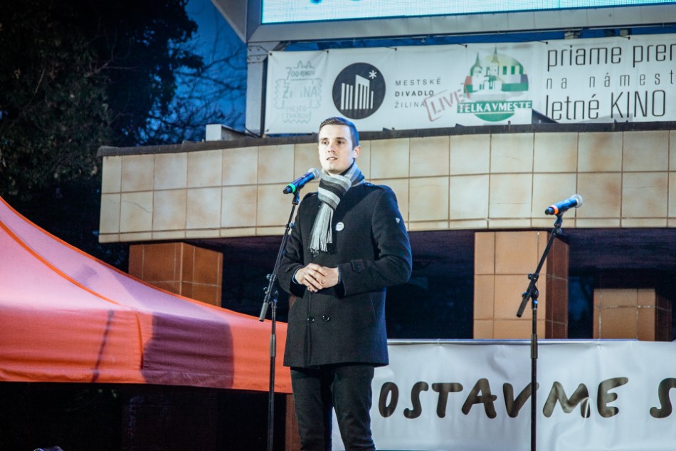 V Žiline, začína veľa dobrých vecí žiť a to dáva nádej. Nielen títo ľudia, ktorí sú výnimoční a úžasní, ale vy všetci, ktorí ste tu teraz, ste nádejou práve preto, aby nám tú spoločnosť prestali riadiť ľudia, ktorí chcú zisk iba pre seba. Nech už tie voľby dopadnú akokoľvek, my už prestaneme dúfať a ako Slovač modliť sa k dobrým vládcom. Už si nenechajme vládnuť nikoho, ani politikov, ani ministrov, ani nikoho, bez kontroly. Naučme sa politikov kontrolovať. Naučme sa stáť si za svojím názorom. A nemusíme prestať robiť to čo robíme, čo nás baví. Nemusíme ísť do verejnej služby, ale keď každý z nás sa rozhodne, aspoň v tom svojom najbližšom okolí, dohliadnuť na to, aby tá spoločnosť fungovala, tak nám to veľmi pomôže.