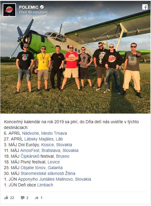 Aj keď program Staromestských slávností v Žiline pre rok 2019 zatiaľ nie je zverejnený, hudobná skupina z Bratislavy POLEMIC, ktorá patrí medzi prionierov štýlov ska a reggae, dnes zverejnila svoj program na nadchádzajúce leto. V ňom je uvedené, že 30. mája sa predstavia práve u nás.