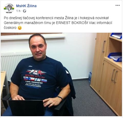 Klub MsHK Žilina dnes informoval o tom, že novým generálnym manažérom Vlkov sa stane Ernest Bokroš. Ten donedávna viedol dlhodobo mládežnícky reprezentačný výber do 20 rokov, nakoniec na tomto poste skončil. Päťdesiatdeväťročný Borkoš získal v minulosti trénerské tituly so Slovanom, Zvolenom a Zlínom.