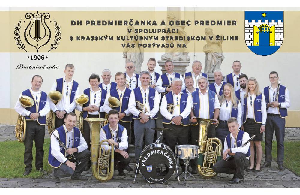 Dychová hudba Predmierčanka a obec Predmier v spolupráci s Krajským kultúrnym strediskom v Žiline pozýva na 10. ročník Prehliadky dychových hudieb, ktorá sa bude konať v sobotu 31.8.2019 v areáli ZŠ Predmier.