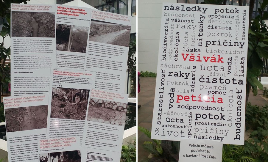 Cieľom je oslovenie všetkých ľudí, ktorým záleží na tom, aby sa naše životné prostredie zlepšovalo, V prípade, že máte alebo aj nemáte cestu okolo, zavítajte na Poštovú č. 1, kde sú v átriu administratívnej budovy nainštalované panely poukazujúce na jednotlivé kroky k záchrane miestneho biokoridoru potoka Všivák.