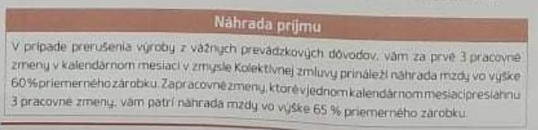 Podľa listu pre zamestnancov bude síce produkcia pozastavená, no pracovníci by mali dostať náhradu príjmu vo výške 60% priemerného zárobku počas 3̶ ̶m̶e̶s̶i̶a̶c̶o̶v̶ prvých 3 dní. Tak to spresňuje tabuľka v závere listu zamestnancom.