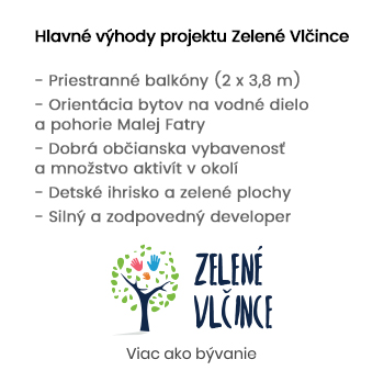 Pre komfortné bývanie v príjemnom susedstve je možný výber bytov od 1 až po 4-izbové byty. Projekt Zelené Vlčince je situovaný na najväčšom žilinskom sídlisku Vlčince, v rozmedzí ulíc Bulharská a Moskovská.