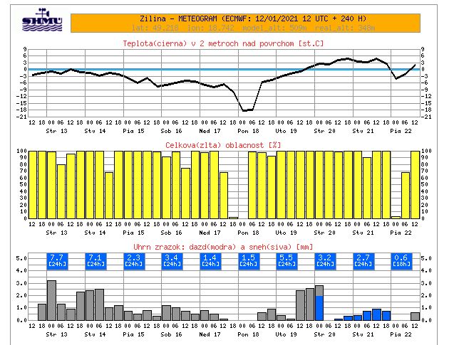 Aktuálna teplota sa pohybuje na úrovni približne -3 °C, počas noci sa môžu tvoriť snehové jazyky a záveje. Výstraha najnižšieho prvého stupňa platí do 12:00 hod. Sneženie a mierny mráz sa očakáva aj počas najbližších dní.