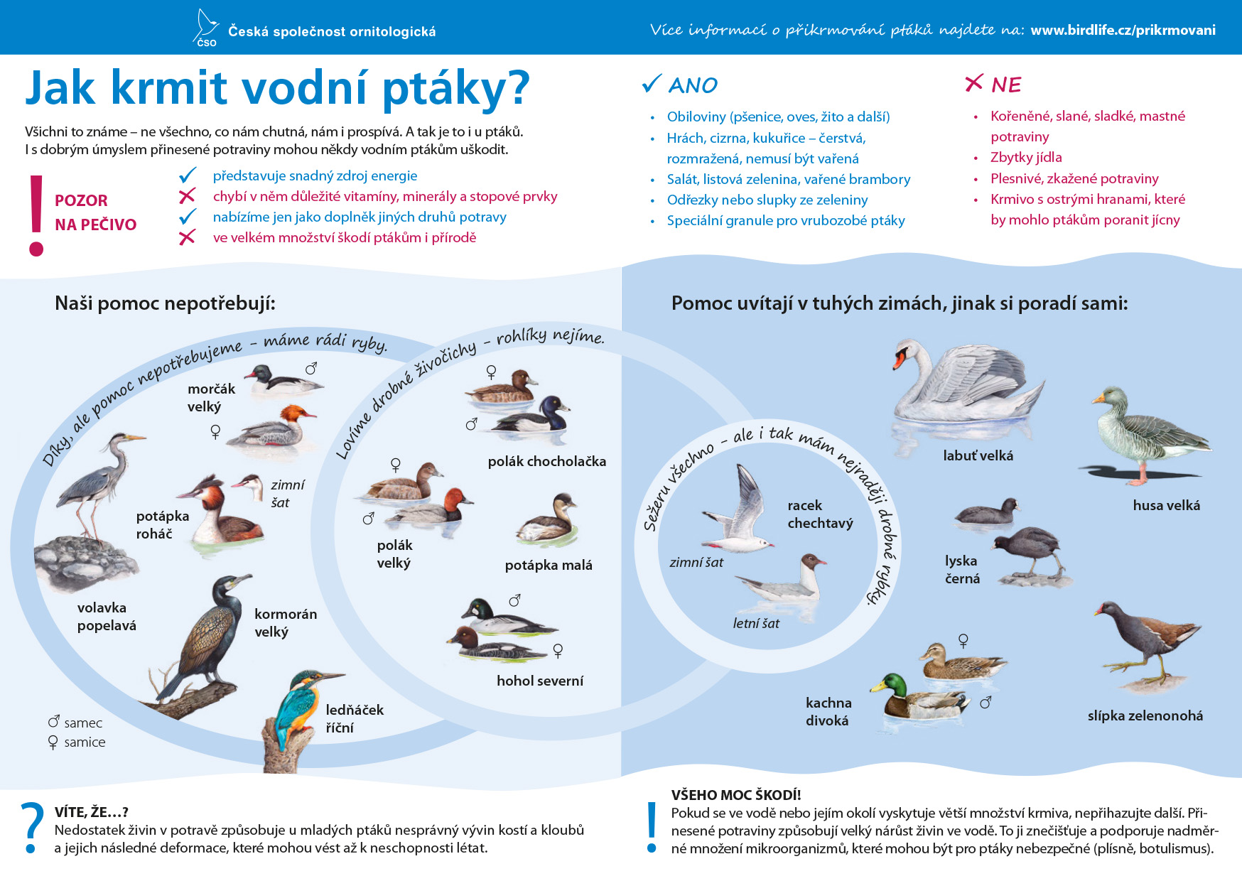 „Pozor na pečivo, nie všetko, čo nám chutí, nám aj prospieva. A podobne je to aj u vtákov - ponúknuté dobroty im síce chutia, ale aj s dobrým úmyslom pripravené potraviny môžu vo veľkom množstve uškodiť. Pre vtáky je pečivo ľahkým zdrojom energie, chýbajú v ňom ale dôležité vitamíny, minerály a stopové prvky, potrebné pre ich zdravý rast a fungovanie,“ upozorňuje Česká společnosť ornitologická.