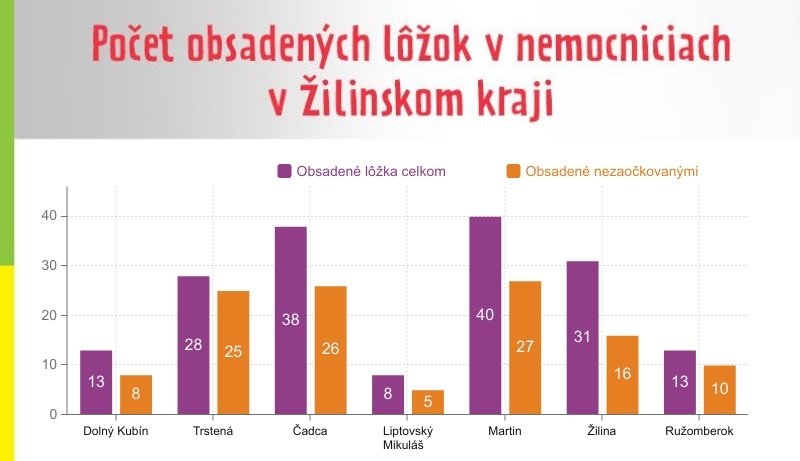 Nemocnice v Žilinskom kraji majú obsadených 39 % reprofilizovaných lôžok, čo predstavuje 171 lôžok a podporu umelej pľúcnej ventilácie podporuje 18 pacientov (údaje sú aktuálne k 31.1.2022).