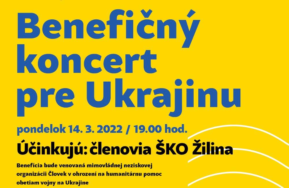 Štátny komorný orchester v Žiline organizuje Benefičný koncert pre Ukrajinu, ktorý sa uskutoční v budove Domu umenia Fatra v pondelok 14. marca 2022 o 19:00 hodine.