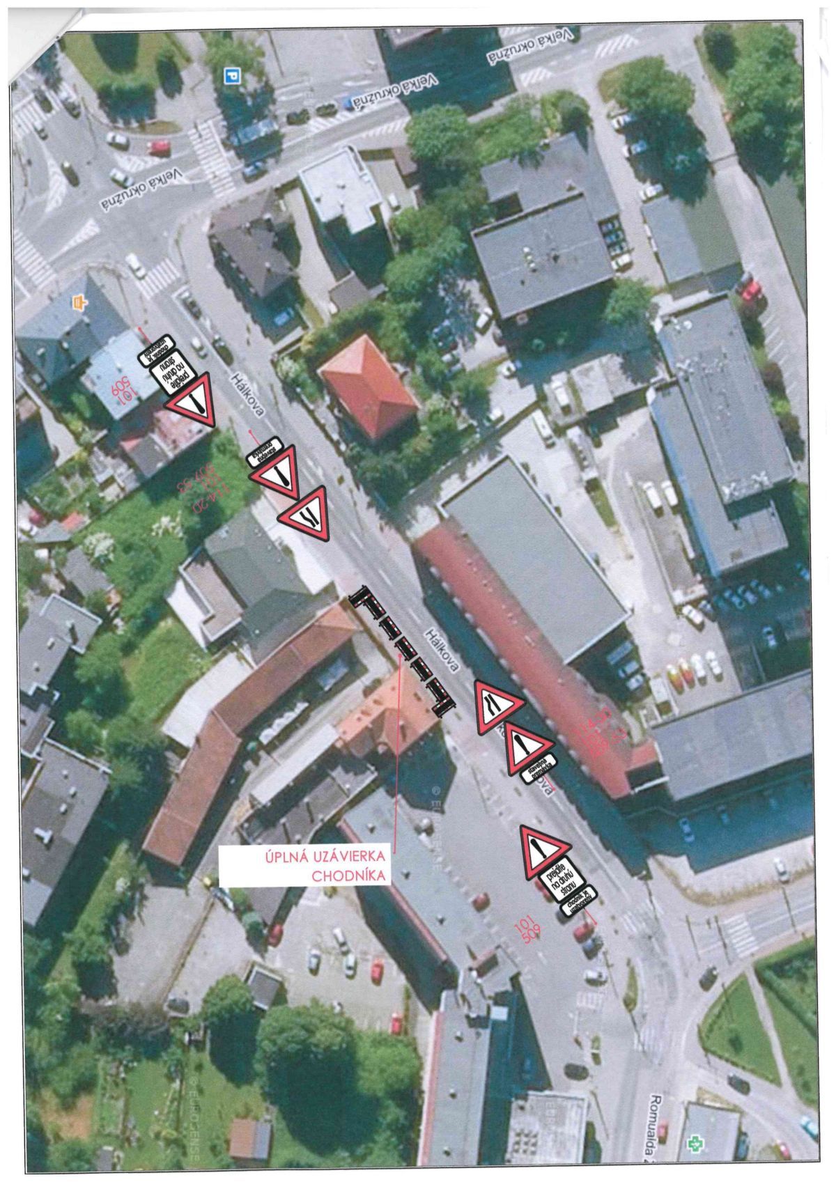 Mesto Žilina upozorňuje na úplnú uzávierku 25 metrového úseku chodníka pre chodcov na Hálkovej ulici v Žiline. Dôvodom uzávierky sú stavebné práce pri budovaní Rezidencie Kolečko. Uzávierka potrvá do 30. augusta.