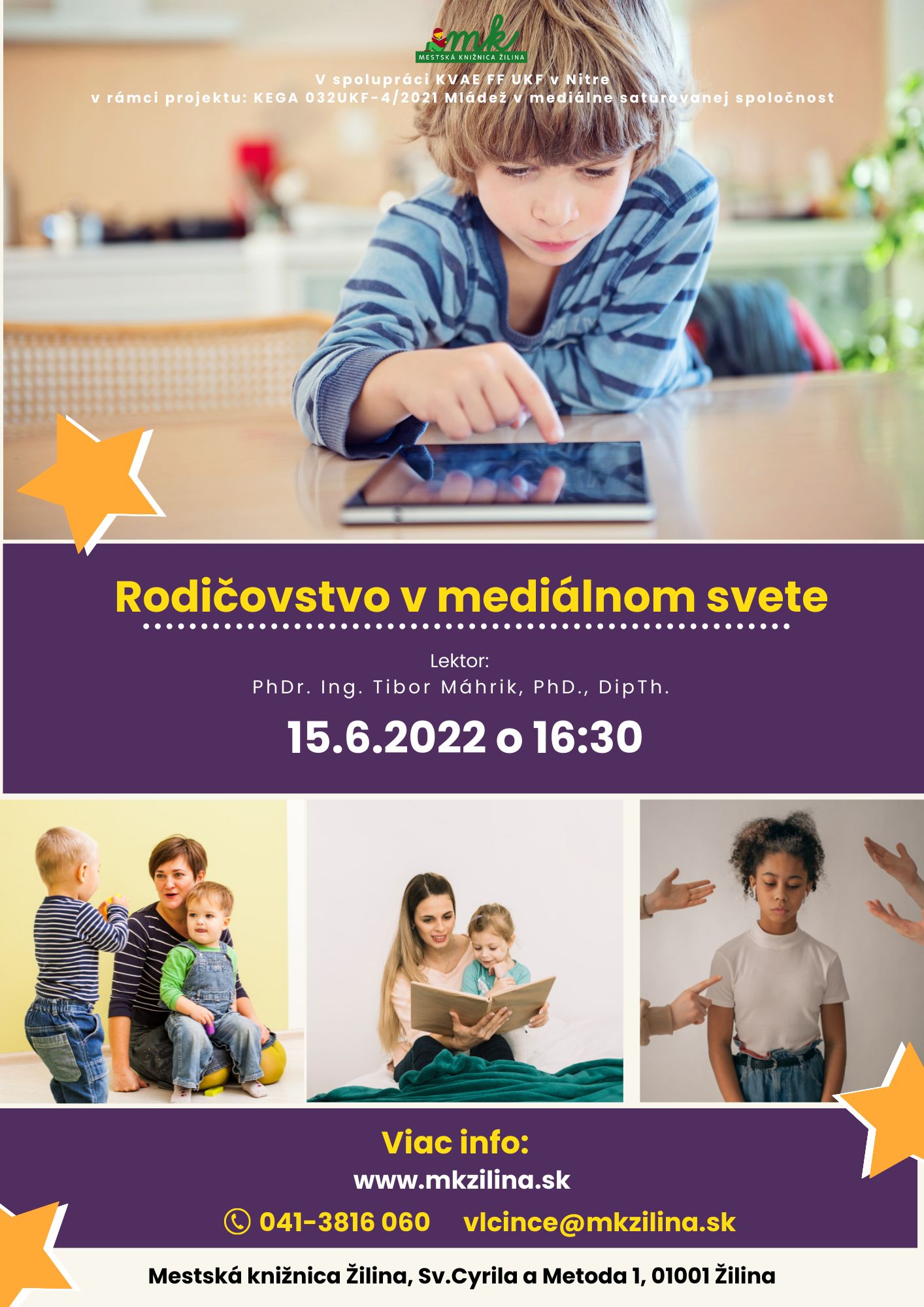Ako byť rodičom v mediálnom svete? Mestská knižnica v Žiline pozýva na podujatie s týmto názvom, ktoré sa uskutoční 15. júna o 16:40 v Mestskej knižnici Žilina - Vlčince.