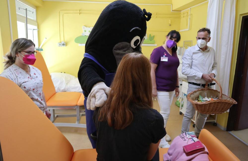 Žilinská nemocnica pripravila pre malých aj väčších detských pacientov darčeky ako ovocie, lízanky, farbičky, maľovanky, alebo balóny. Riaditeľ nemocnice Žilina Eduard Dorčík potešil spolu s rozprávkovým krtkom všetkých detských pacientov hospitalizovaných na oddelení pediatrie a detskej ortopédie.