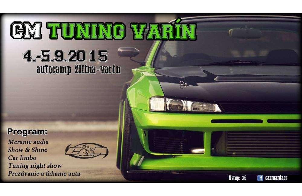 Pre automobilových nadšencov máme dobrú správu. Už začiatkom septembra sa pri Žiline uskutoční zraz, na ktorom si každý tuner príde na svoje! Niekoľko nadšencov sa spojilo, aby pre vás pripravili akciu pod názvom CM Tuning Varín 2015.