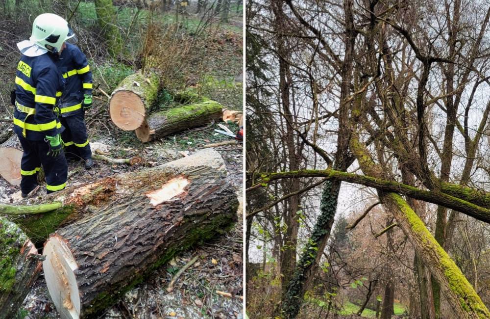 Dobrovoľní hasiči v Trnovom orezali v parku na Rosinkách nebezpečne naklonené stromy