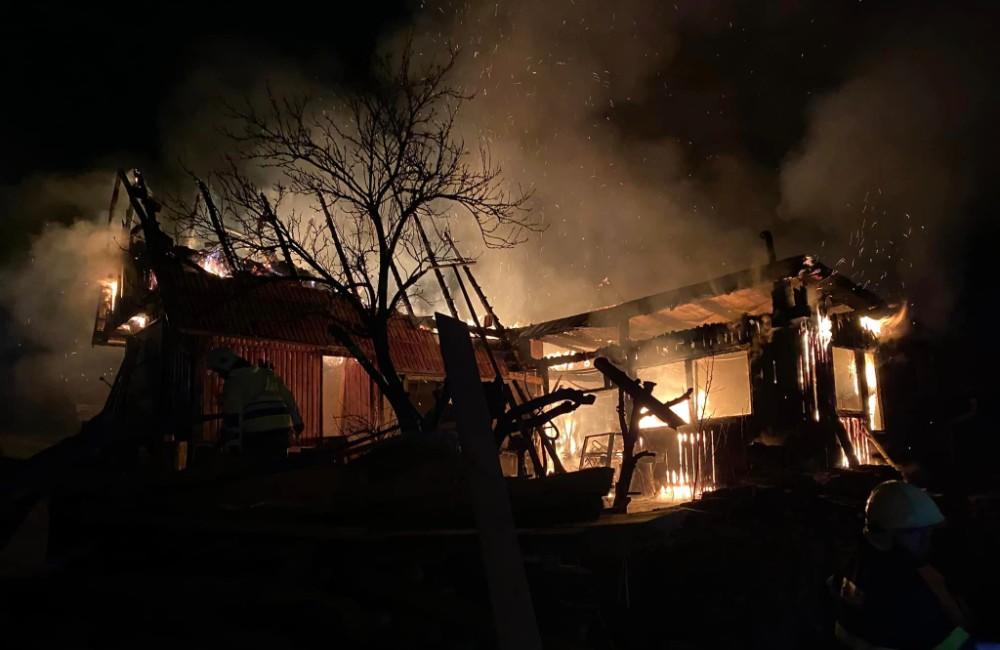 FOTO: V Hruštíne počas noci zhorela hospodárska budova, zasahovali hasiči zo šiestich staníc