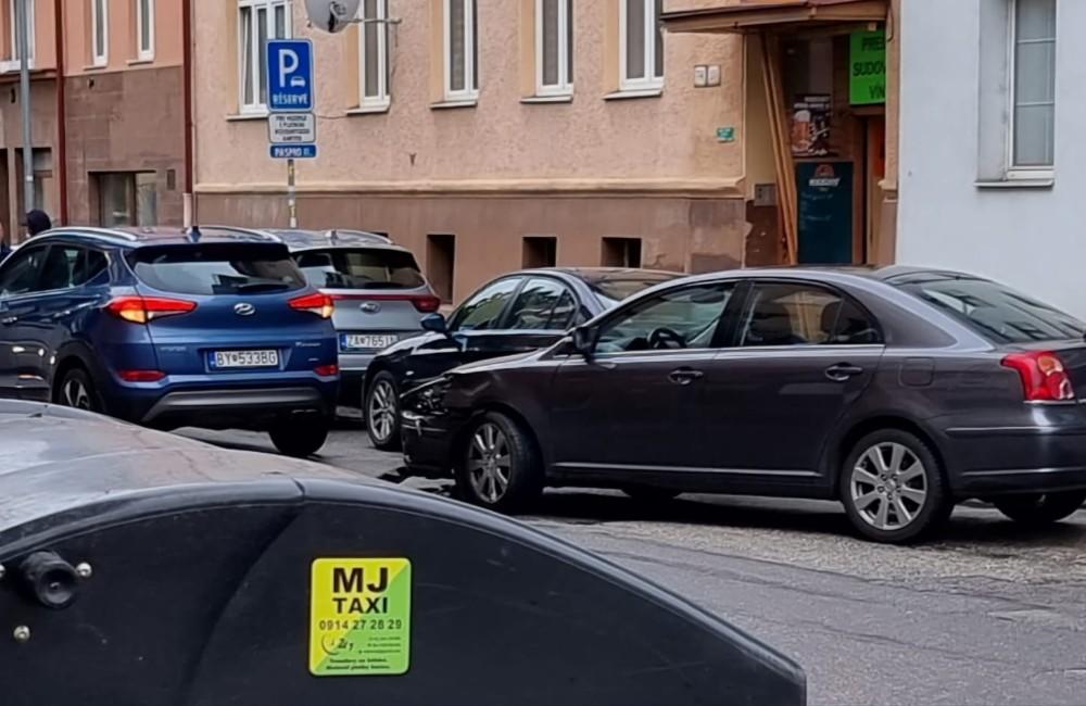 Dve osobné motorové vozidlá sa zrazili v stredu 17. mája krátko pred 10:30 hod. dopoludnia na ulici Daniela Dlabača v blízkosti predajne potravín COOP Jednota. Podľa informácií od svedka vychádzal vodič tmavého automobilu značky Toyota z parkoviska, pričom narazil do boku modrého vozidla značky Hyundai, ktoré išlo po hlavnej ceste.