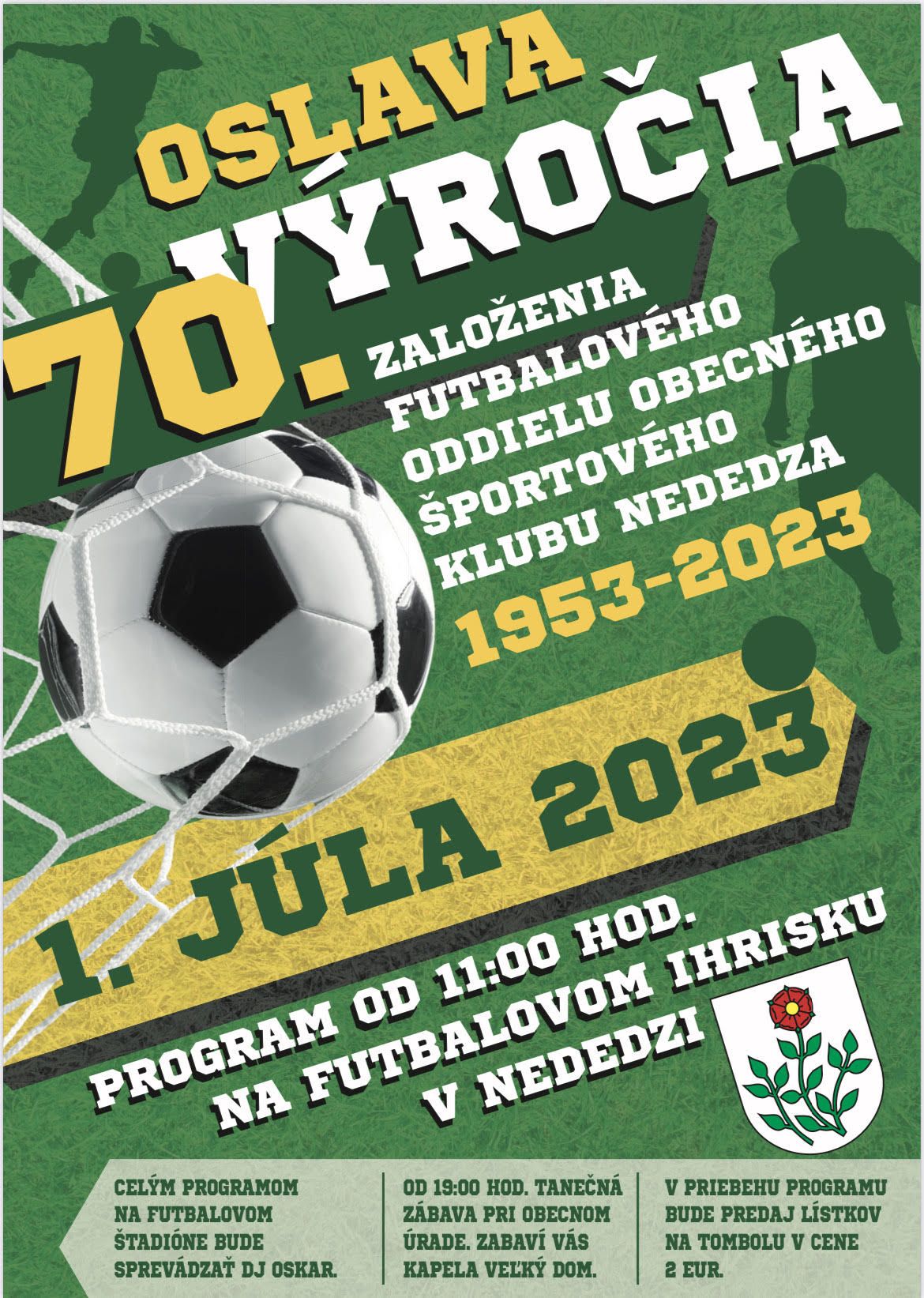 Obecný športový klub Nededza pozýva na oslavu 70. výročia založenia futbalového oddielu klubu, ktorá sa uskutoční v sobotu 1. júla 2023 od 11:00 na futbalovom štadióne v Nededzi.