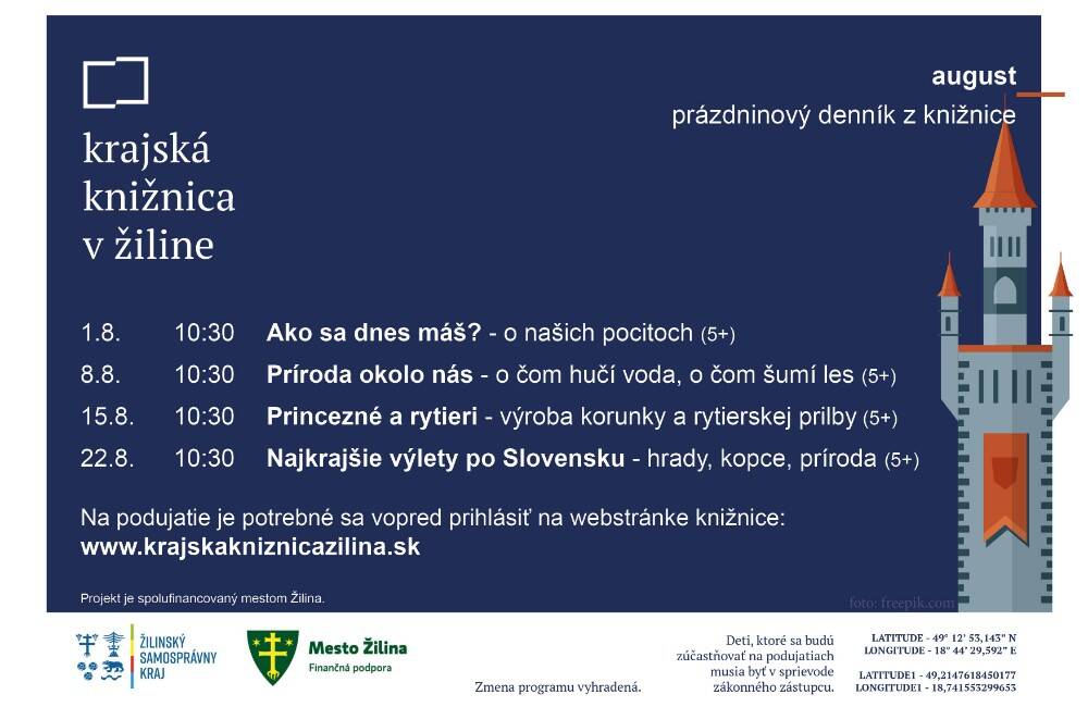Krajská knižnica v Žiline pozýva mladých návštevníkov na podujatie, ktoré sa uskutoční v utorok 22. augusta 2023 o 10:30 hod.