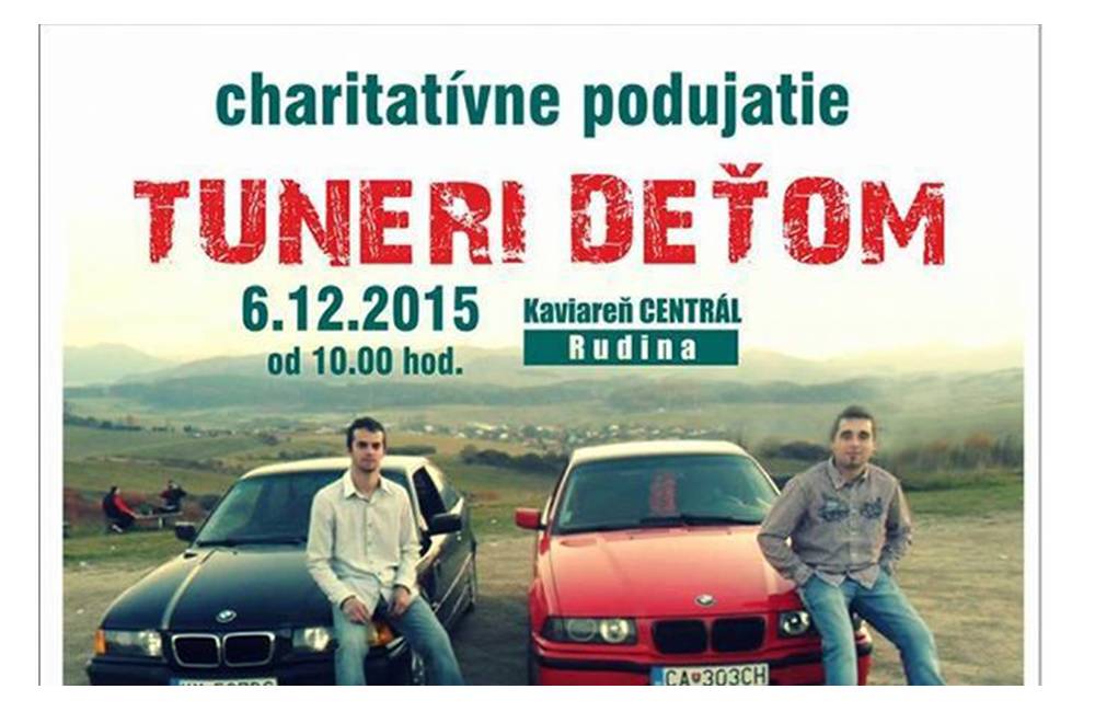 Srdečne vás chceme pozvať na charitatívne podujatie, ktoré sa bude konať dňa 6.12. 2015 o 10:00 pod názvom: Tuneri deťom. Zámerom akcie je pomôcť sociálne slabším deťom, hlavne z detských domovov v okolí. Vzhľadom na to, že na toto podujatie nemáme žiadnych sponzorov a robíme to z vlastných zdrojov a z vlastnej vôle,preto uvítame čo najviac účastníkov, ktorí nás podporia a pridajú sa k nám.