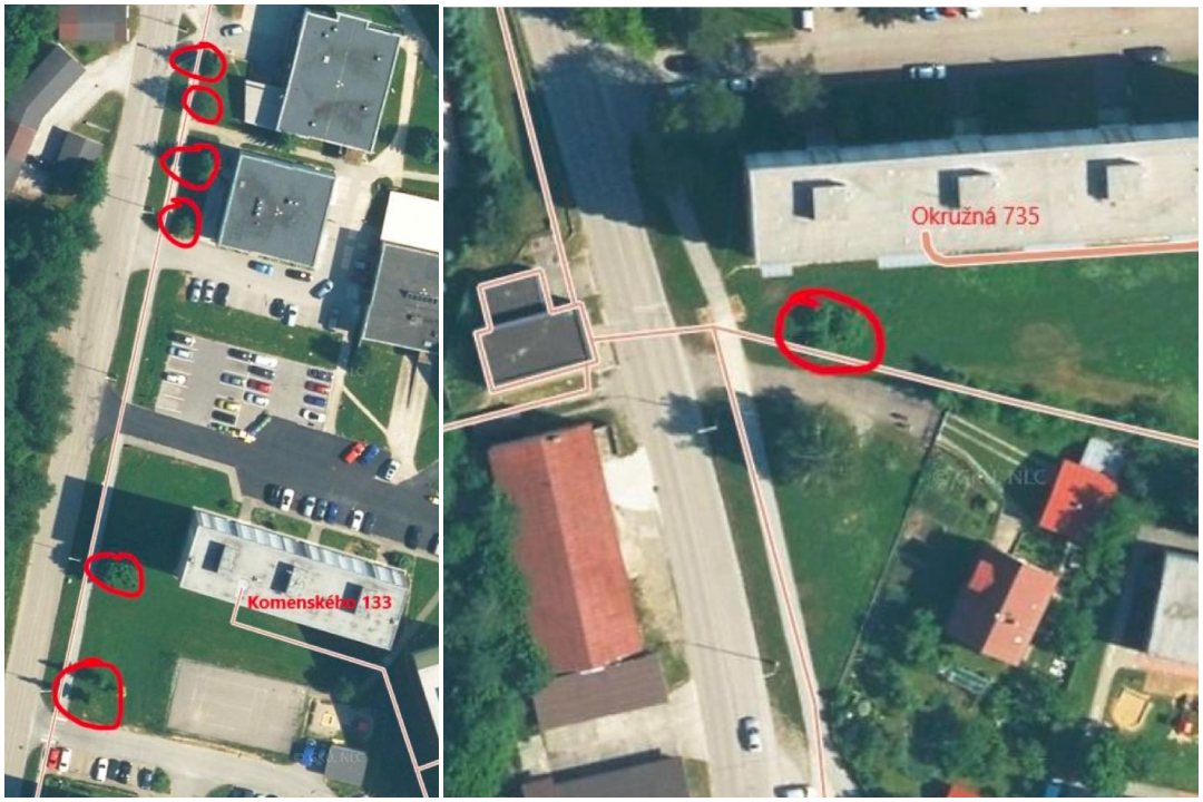 Celkovo tak padne deväť kusov stromov, z toho sedem je smrekov, jedna breza a jeden javor. Všetky z nich sa pritom nachádzajú v blízkosti ulíc Okružná a Komenského.