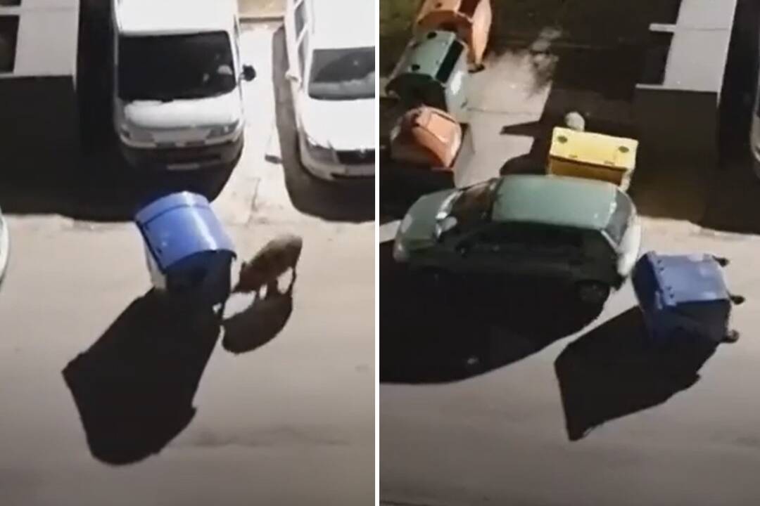 V poslednú februárovú noc natočila pani Mária zo svojho balkóna zaujímavé video. Väčší diviak sa najskôr pohyboval okolo stojiska so smetnými nádobami, následne sa rozhodol zahrať si s nimi obľúbenú francúzsku hru.