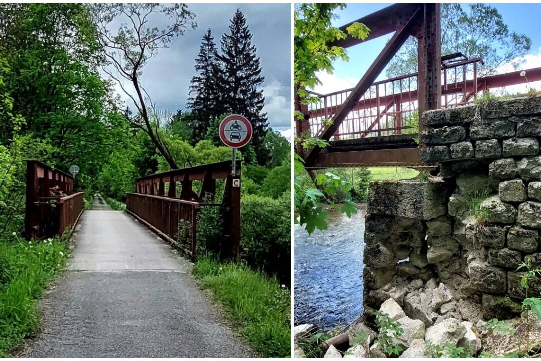 FOTO: Obľúbená cyklotrasa vedie po moste stojacom na rozpadnutých kameňoch. Mesto ho nemôže opraviť