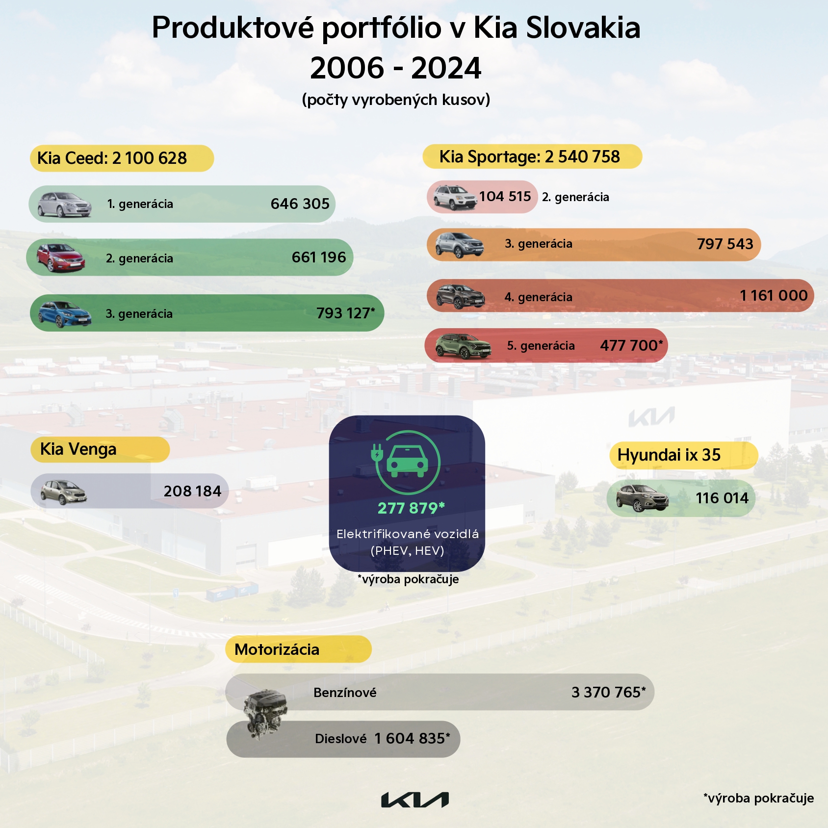 Kia Slovakia aktuálne vyrába denne takmer 1 500 vozidiel Ceed a Sportage. Autá boli od spustenia výroby exportované celkovo do 109 krajín, najviac z nich však smeruje do Veľkej Británie, Nemecka a Španielska. O elektrifikované autá majú zase najvýraznejší záujem vo Veľkej Británii, Francúzsku, Španielsku a Švédsku.