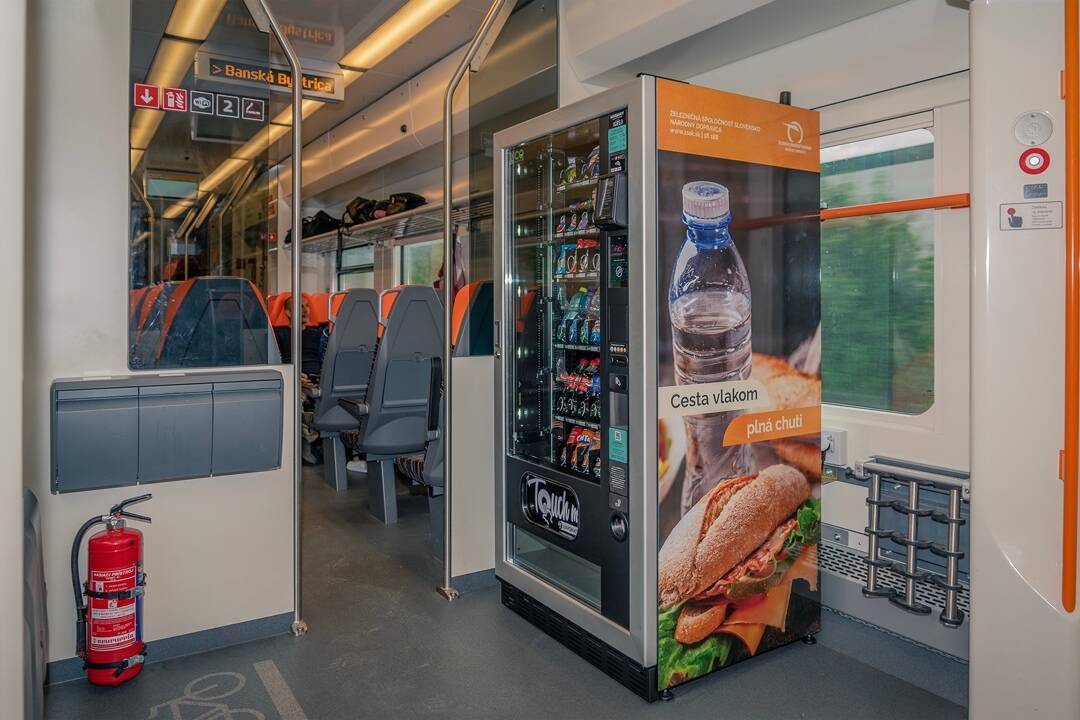Automaty na občerstvenie sú umiestnené zatiaľ len vo vlakoch premávajúcich na trase Nová Baňa – Banská Bystrica. Zisťovali sme preto, či ich dopravca plánuje zaviesť aj do expresných vlakov premávajúcich na linke Bratislava – Žilina – Košice, ktoré bývajú veľmi často využívané.