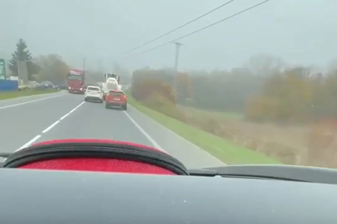 Na záberoch z palubnej kamery nášho čitateľa je vidieť, ako neustále prechádza na ľavú stranu svojho jazdného pruhu a pripravuje sa na obiehanie. V momente, ako sa stredová čiara zmení na prerušovanú, stúpi na plyn a začne predchádzať. Oproti nemu však ide kamión.