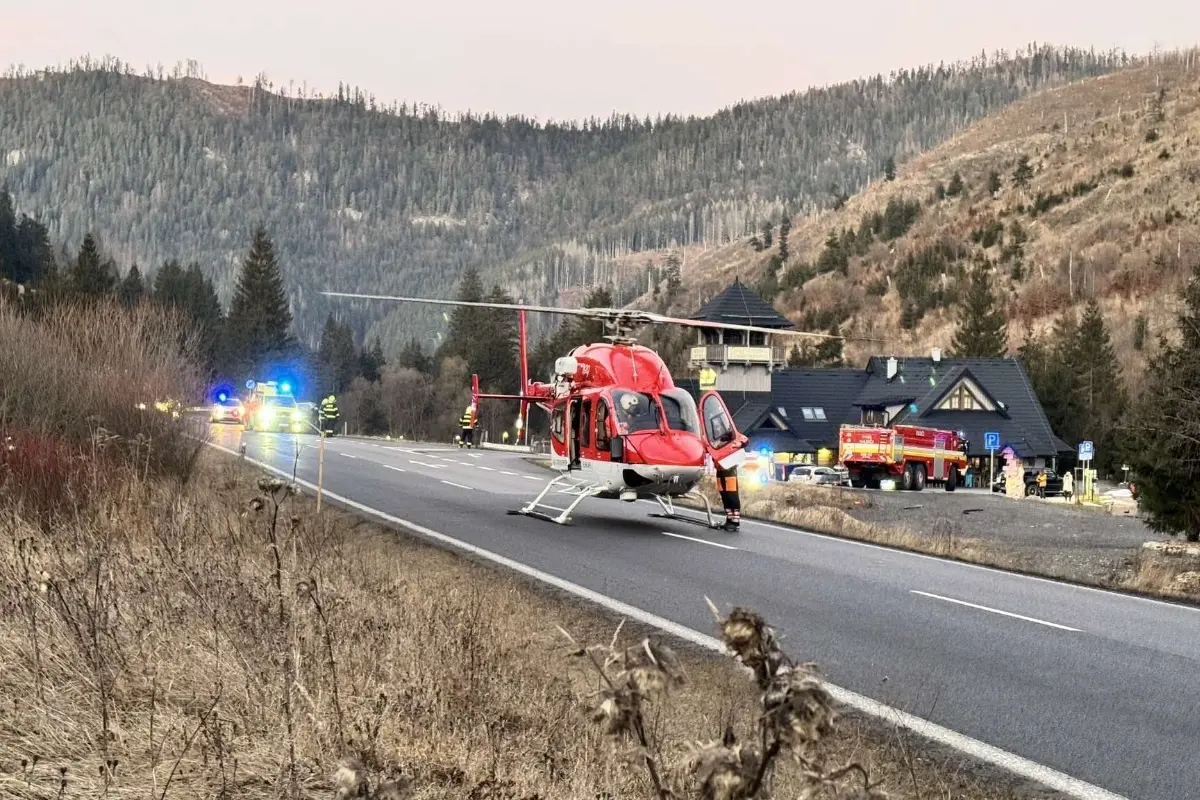 FOTO: Pod Čertovicou pristál záchranársky vrtuľník. Zasahuje pri vážnej nehode dvoch vozidiel