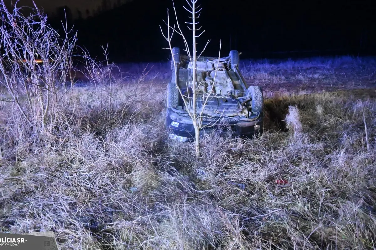 FOTO: Pri Žiline odhodilo auto po zrážke s kamiónom na strechu. Ako zázrakom sa nikomu nič nestalo