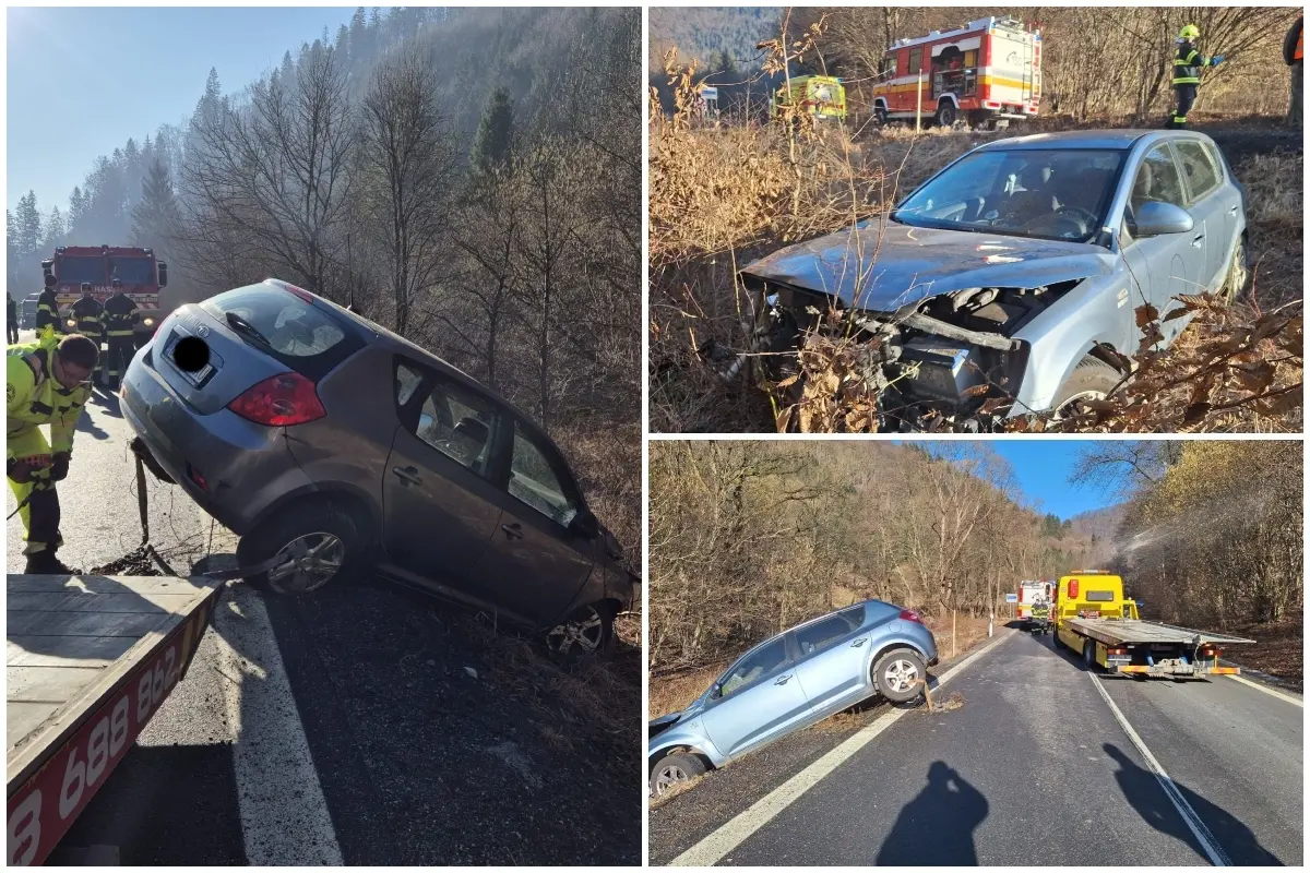 FOTO: Pred Zázrivou skončilo auto mimo cesty, posádka sa zranila. Cesta bola dočasne neprejazdná