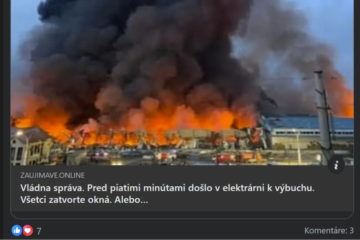 V žilinských skupinách sa šíri „vládna správa“ o výbuchu v elektrárni. Na odkazy neklikajte