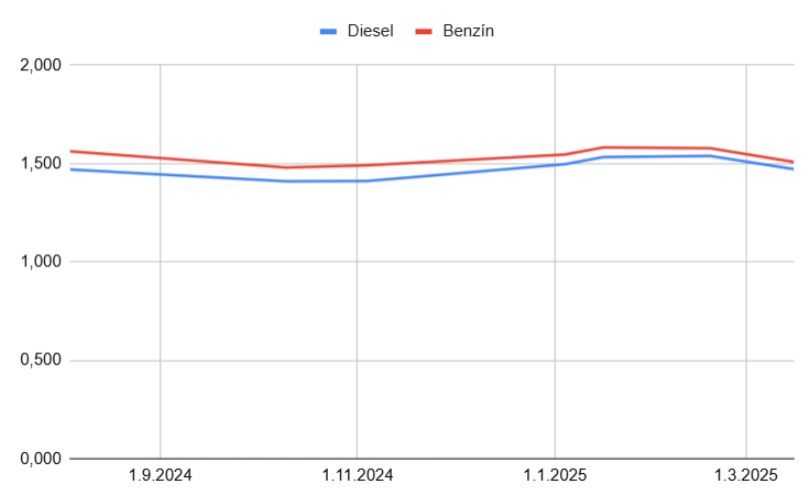 Ceny pohonných látok na Slovensku v druhej polovici marca 2025 mierne poklesli. Stalo sa tak po približne štyroch mesiacoch postupného zdražovania. V januári palivá zdraželi kvôli novej DPH vo výške 23%, vo februári sme tankovali najdrahšie za posledných 6 mesiacov.