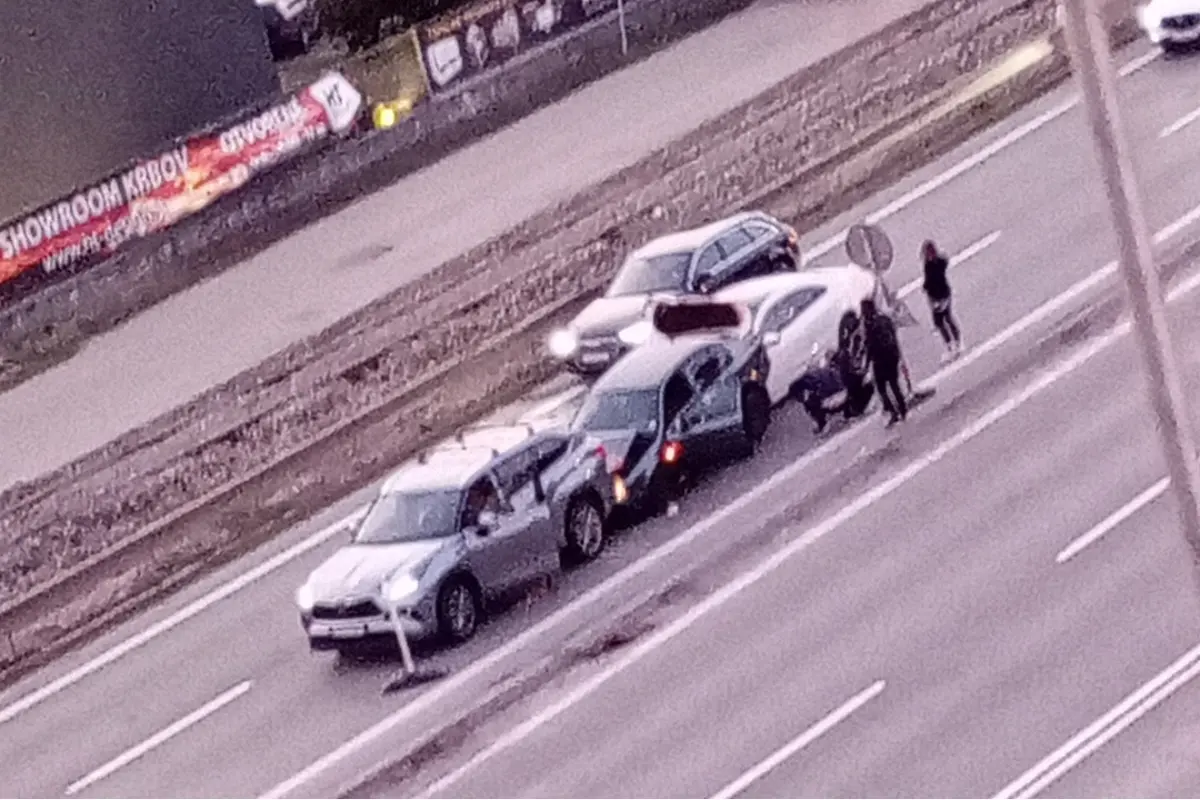 Rozbité autá po kolízii blokujú jeden jazdný pruh. Vodiči ani dopravné aplikácie dosiaľ neupozorňujú na zdržanie, dopravnú nehodu je možné obísť.