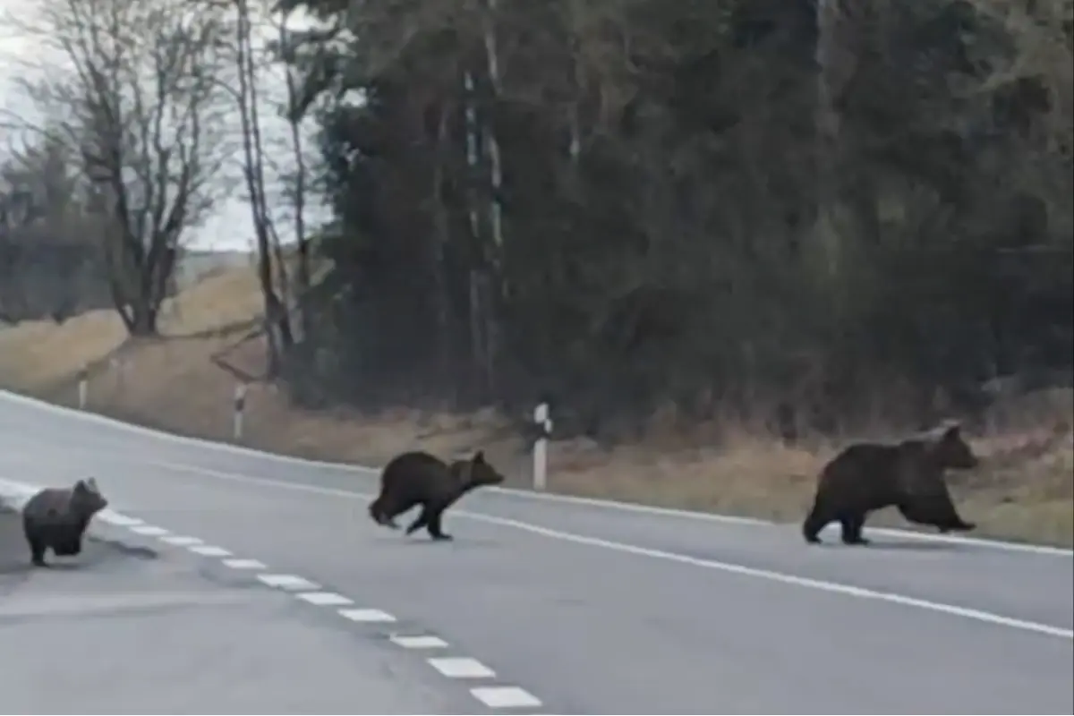 VIDEO: Medvedia rodinka pokojne prebehla cez cestu na Liptove. Obzrela sa, či nejdú autá