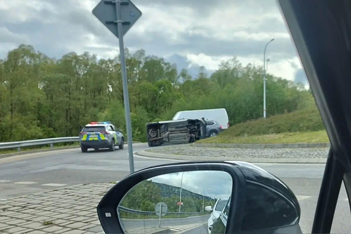 Na kruhovom objazde v Námestove došlo k nehode, auto leží prevrátené na boku (VIDEO)