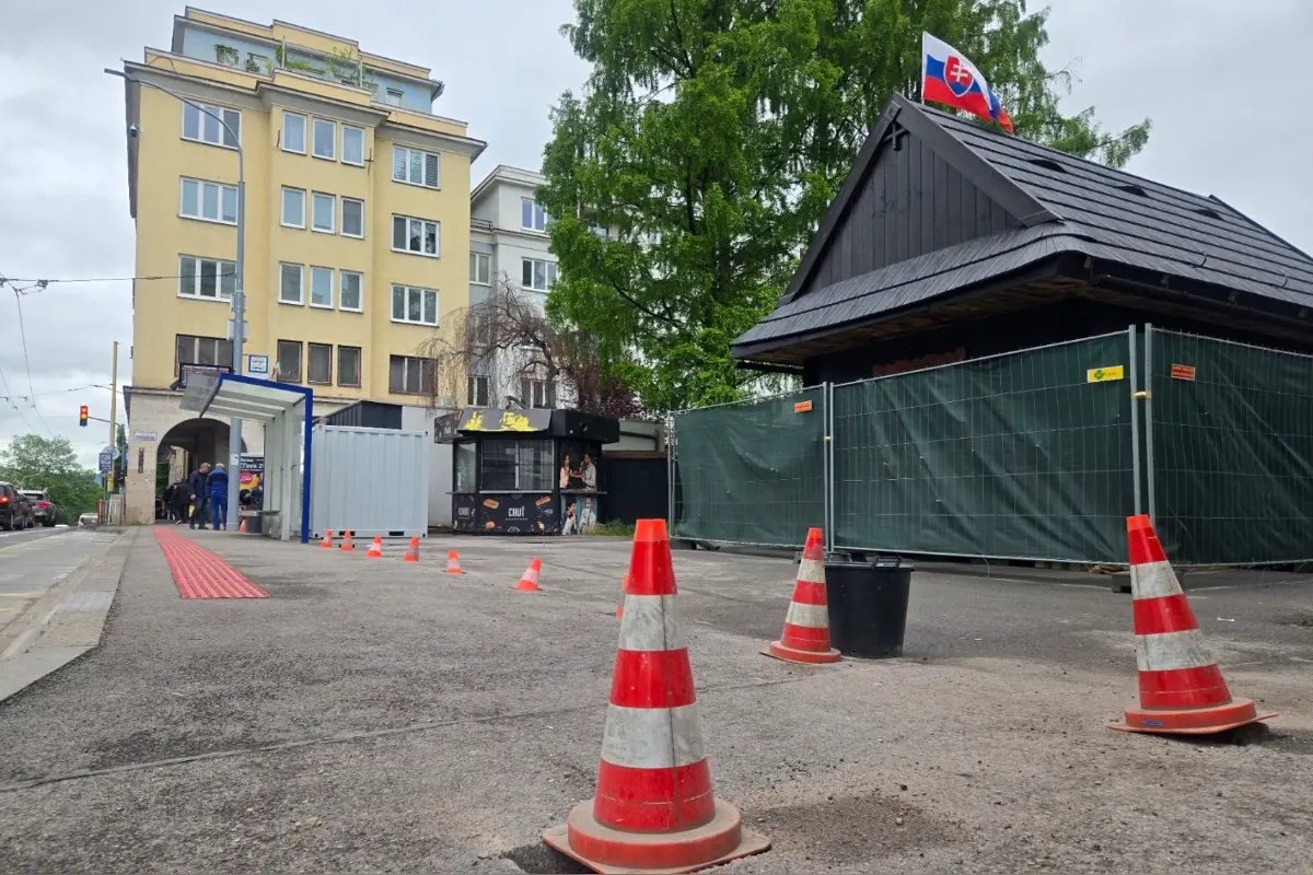 Mesto už dávnejšie vyhralo súdny spor s majiteľom pozemku, na ktorom stojí stánok s predajňou pečiva. Skôr, než došlo k exekúcii, majiteľ stánok rozobral a posunul ho o pár metrov vedľa. Pred niekoľkými dňami ho však pomocou ťažkej techniky opäť vrátil do blízkosti zastávky mestskej hromadnej dopravy.