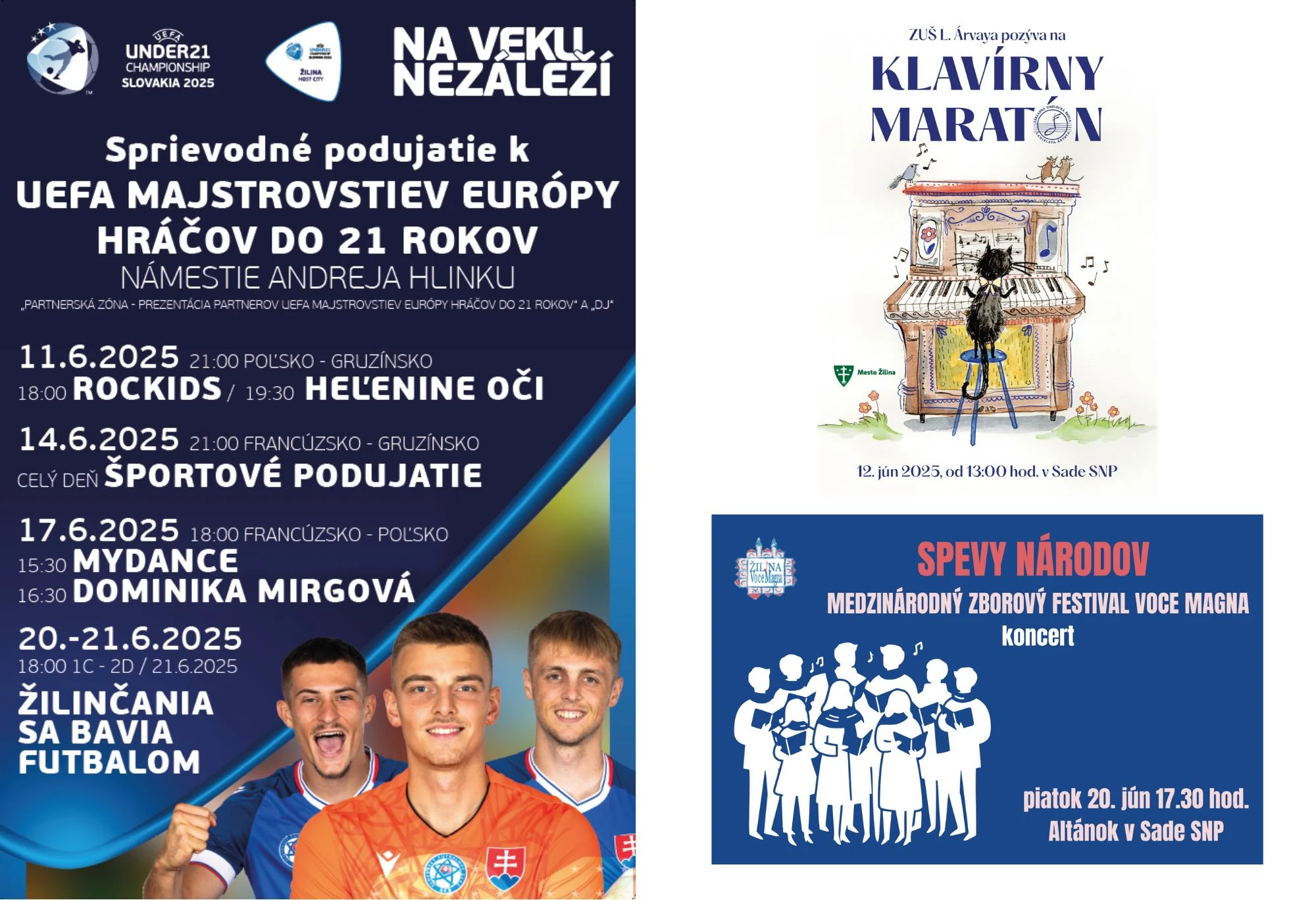 Žilina sa už dnes stáva spolu s ďalšími slovenskými mestami hostiteľom Majstrovstiev Európy vo futbale hráčov do 21 rokov. Otvárací zápas medzi Poľskom a Gruzínskom sa na mestskom trávniku odohrá o 21. hodine. Fanúšikovia si v meste vychutnajú celkovo štyri stretnutia, vrátane atraktívneho štvrťfinále.