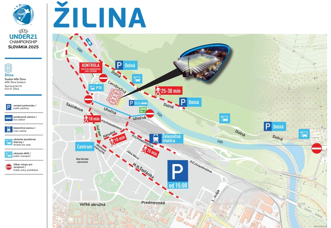 Už o pár dní sa Žilina stane jedným z dejísk Majstrovstiev Európy vo futbale do 21 rokov. Mesto očakáva veľký príliv fanúšikov z celého Slovenska aj zahraničia, čo výrazne ovplyvní premávku, najmä v centre a v okolí štadióna MŠK Žilina. Polícia preto vydala prehľad dopravných obmedzení, ktoré budú platiť počas dní zápasov.