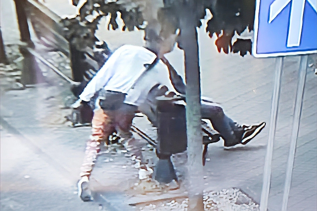 Poškodený, ktorý bol v tom čase pod vplyvom alkoholu, si čin síce všimol, no nedokázal primerane zasiahnuť. Mestskí policajti však boli na mieste doslova v priebehu niekoľkých sekúnd a podozrivého zadržali len pár metrov od lavičky.