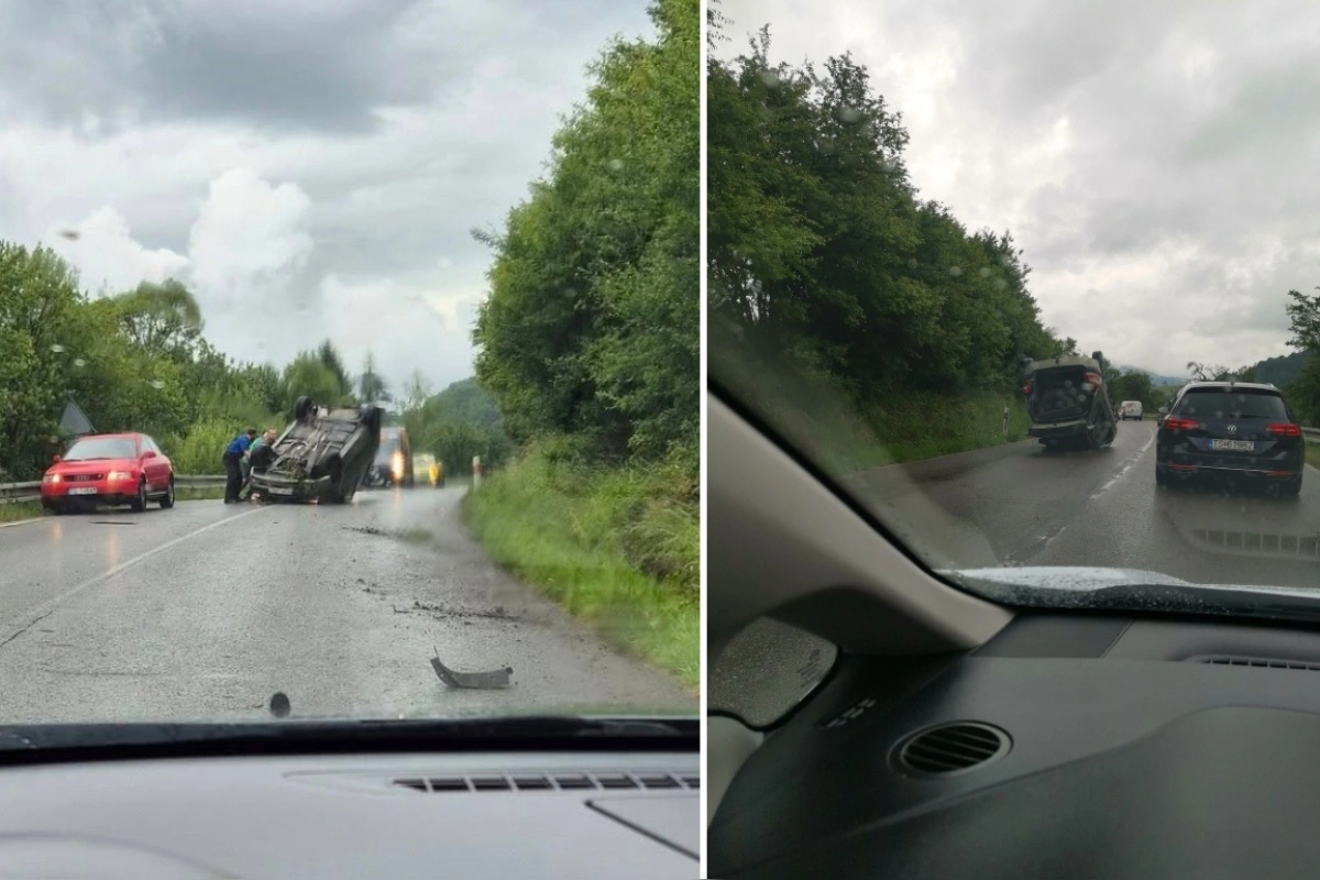 Automobil sa z neznámych príčin prevrátil na strechu a ostal ležať na ceste. Vozovku pokrýva viacero úlomkov karosérie. Vodičom odporúčame, aby v tomto úseku zvýšili pozornosť. Na miesto mieria záchranné zložky.