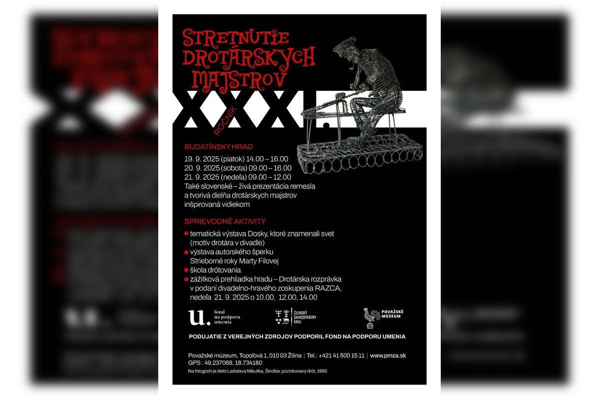 Brány Považského múzea sa opäť otvárajú umeleckým remeselníkom a neprofesionálnym výtvarníkom pracujúcich s drôtom z rôznych kútov Slovenska i z Čiech. Tridsiaty prvý ročník populárneho Stretnutia drotárskych majstrov sa uskutoční v dňoch 19. až 21. septembra 2025 v Budatínskom hrade. Už tradične prinesie pozoruhodnú prehliadku zručnosti, fantázie a tvorivého rozletu ľudí, ktorí svoj život zviazali s kovovým vláknom a z úcty k predkom ďalej invenčne rozvíjajú jedinečné, dnes už svetové, kultúrne dedičstvo.