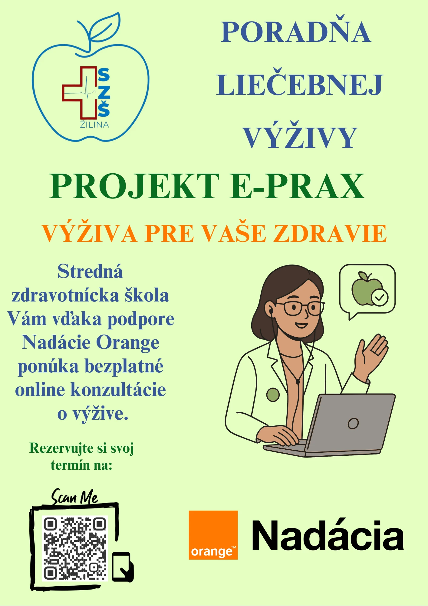 Stredná zdravotnícka škola v Žiline prináša inovatívny projekt s názvom e-prax, ktorý prepája odborné vzdelávanie s modernými technológiami. Vďaka podpore Nadácie Orange vznikla online poradňa zdravia, kde žiaci odboru asistent výživy poskytujú pacientom telekonzultácie pod vedením skúsených pedagógov.