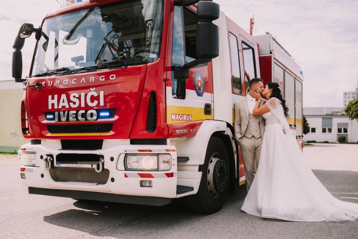 Neodmysliteľnou súčasťou svadby býva tradičné portrétové fotenie a keďže išlo o hasiča telom aj dušou, fotografie vznikli, ako inak, pri hasičskom aute. O krásne zábery zo svadobného dňa sa hasiči podelili aj na sociálnej sieti.