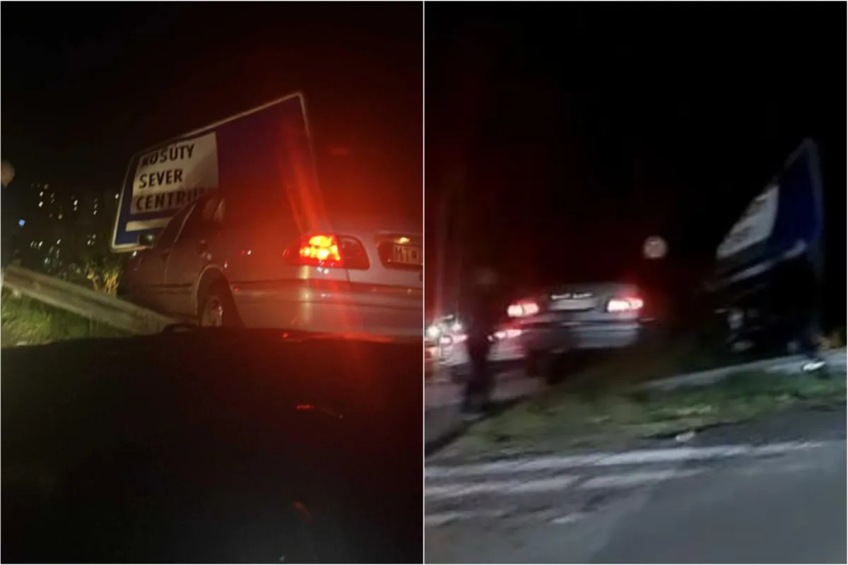 Nehoda pri vjazde do Košút: Auto prešlo cez zvodidlá a vrazilo do dopravnej značky
