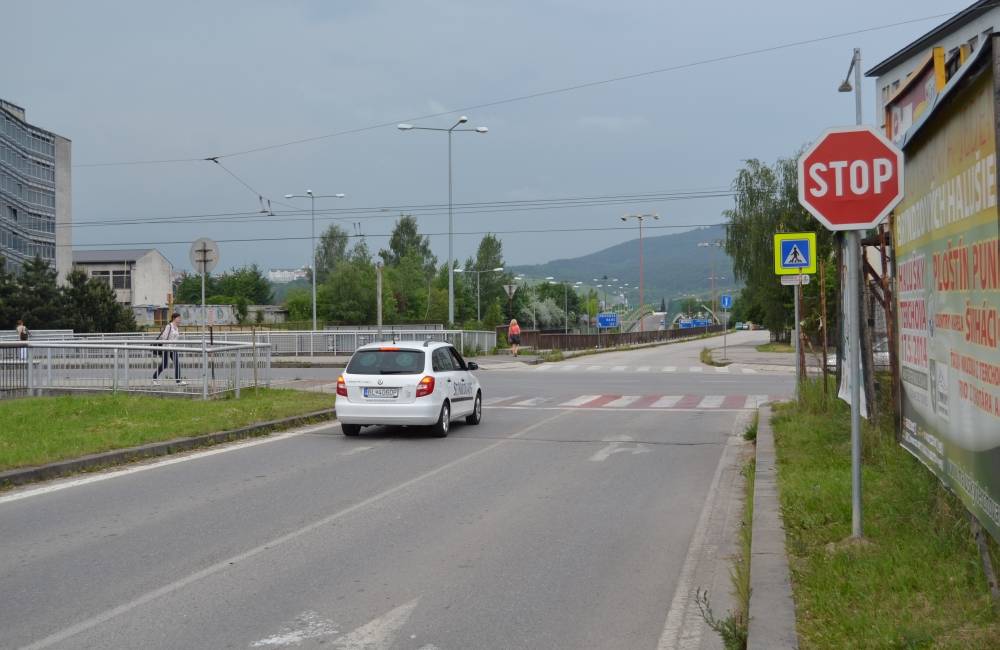 Pri výjazde z Nemocničnej na Hliny sa cesta delí na dva pruhy.
