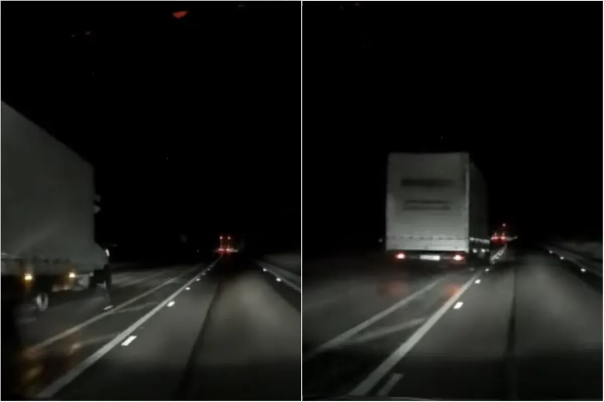 Koncom januára sa jednej vodičke podarilo v skorých ranných hodinách zachytiť na palubnú kameru mimoriadne nebezpečnú jazdu. Za tmy, pri rýchlosti približne 90 kilometrov za hodinu, ju začal obiehať vodič nákladného vozidla. Nákladiak išiel výrazne rýchlejšie, než povoľujú predpisy, a podobné riskantné manévre skúšal aj ďalej na trase.